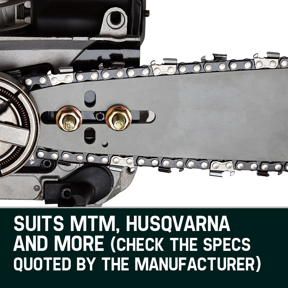 The Baumr-AG 22" Chainsaw Chain has a 0.058" gauge and 86 drive links. Its patented Tru-Sharp technology offers prolonged sharpness, and its anti-jam roll links and low resistance bevel tie-strap act in unison to minimise kickback.