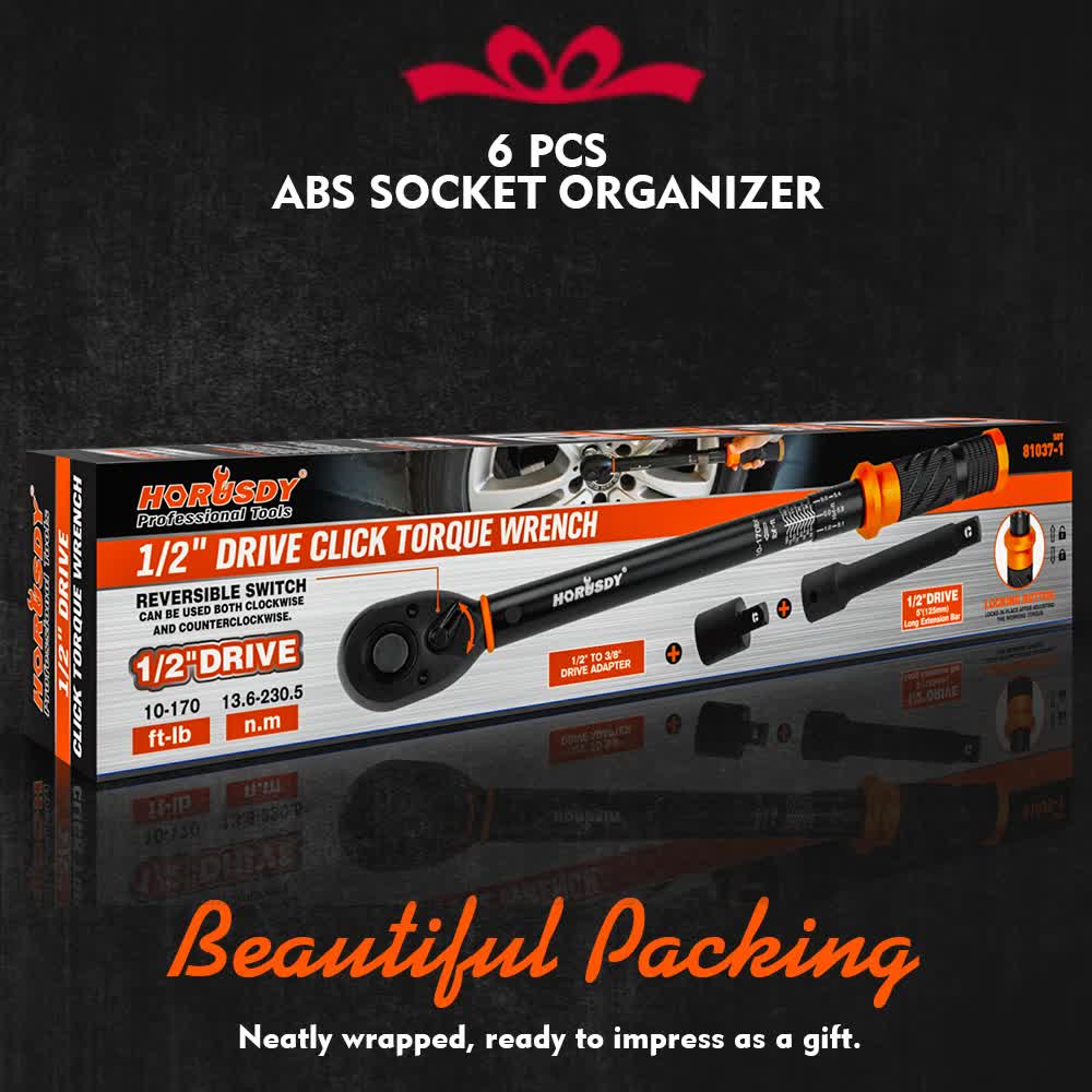 【Easy to Use Safe Operation】Simply pull down the locking ring to set your desired torque value. When the preset torque is reached, a clear click sound and tactile vibration alert you to stop applying force, preventing over-tightening and damage to bolts or nuts