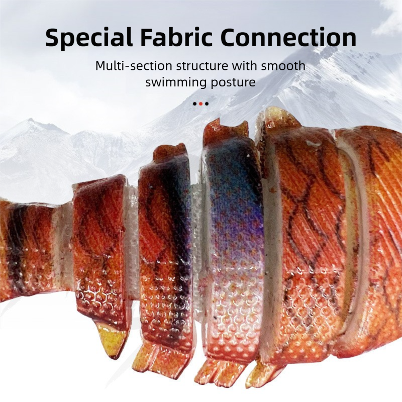 - ✔ Realistic 6-Segment Body: Crafted with special fabric connections, creating a remarkably smooth and lifelike S-shaped swimming action that drives fish wild.