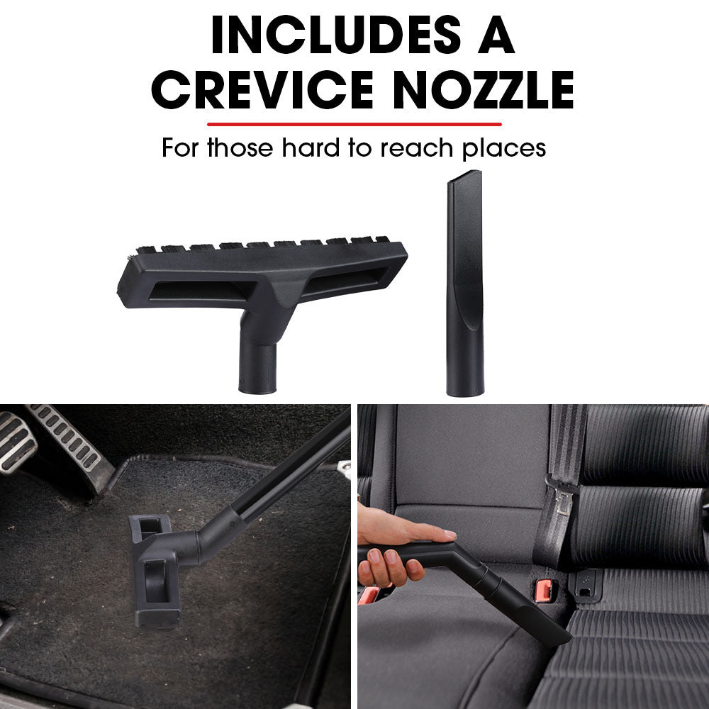 The head of this vacuum cleaner can vacuum carpet as well as hard floors, making it a versatile cleaning tool for any surface. The included crevice nozzle is perfect for cleaning car seats and other hard to reach places. This Baumr-AG Wet and Dry Vacuum is easy to store or transport with its space-saving design that neatly fits all of your attachments on the base.