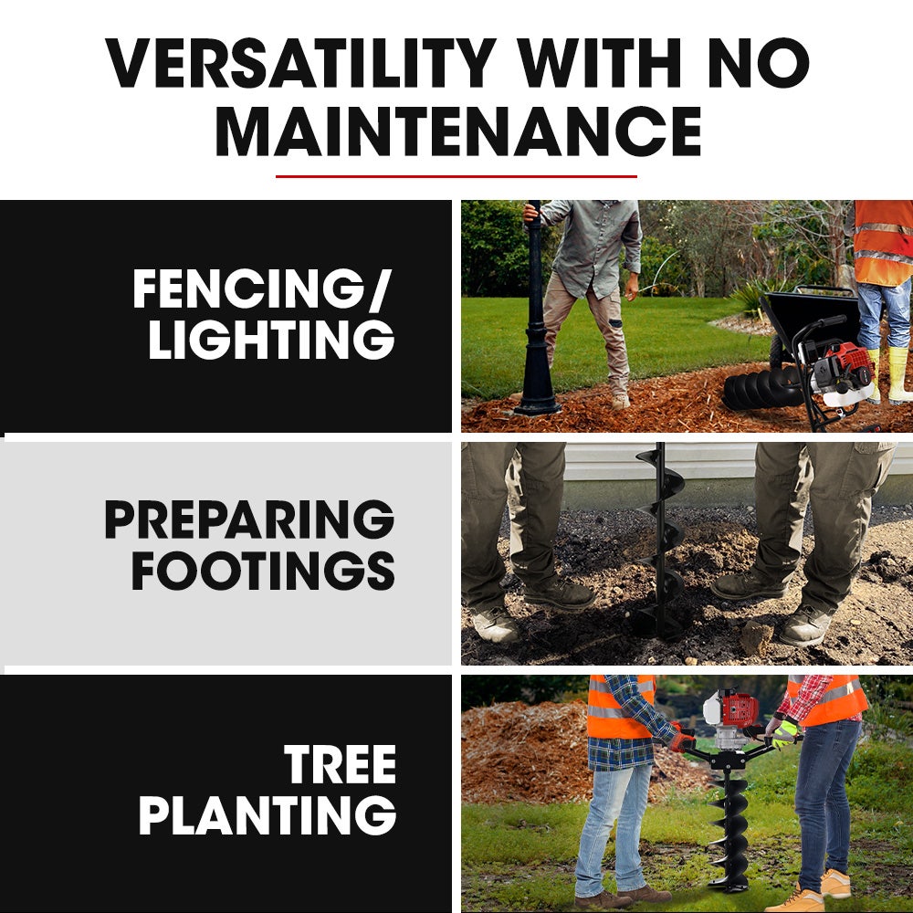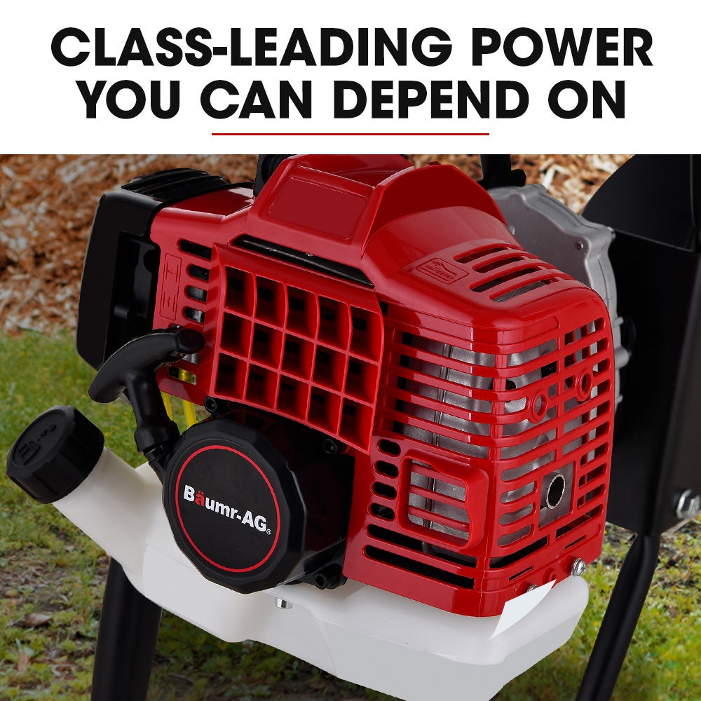 The BPX-1100 Baumr-AG Post Hole Digger is optimised for two-person operation, greatly simplifying the task at hand. This design enhances ease of use as two operators can effortlessly manage the machine, sharing the load and coordinating movements for smoother operation. The shared effort not only increases efficiency but also ensures a more controlled and steady drilling process, ideal for achieving precise results.