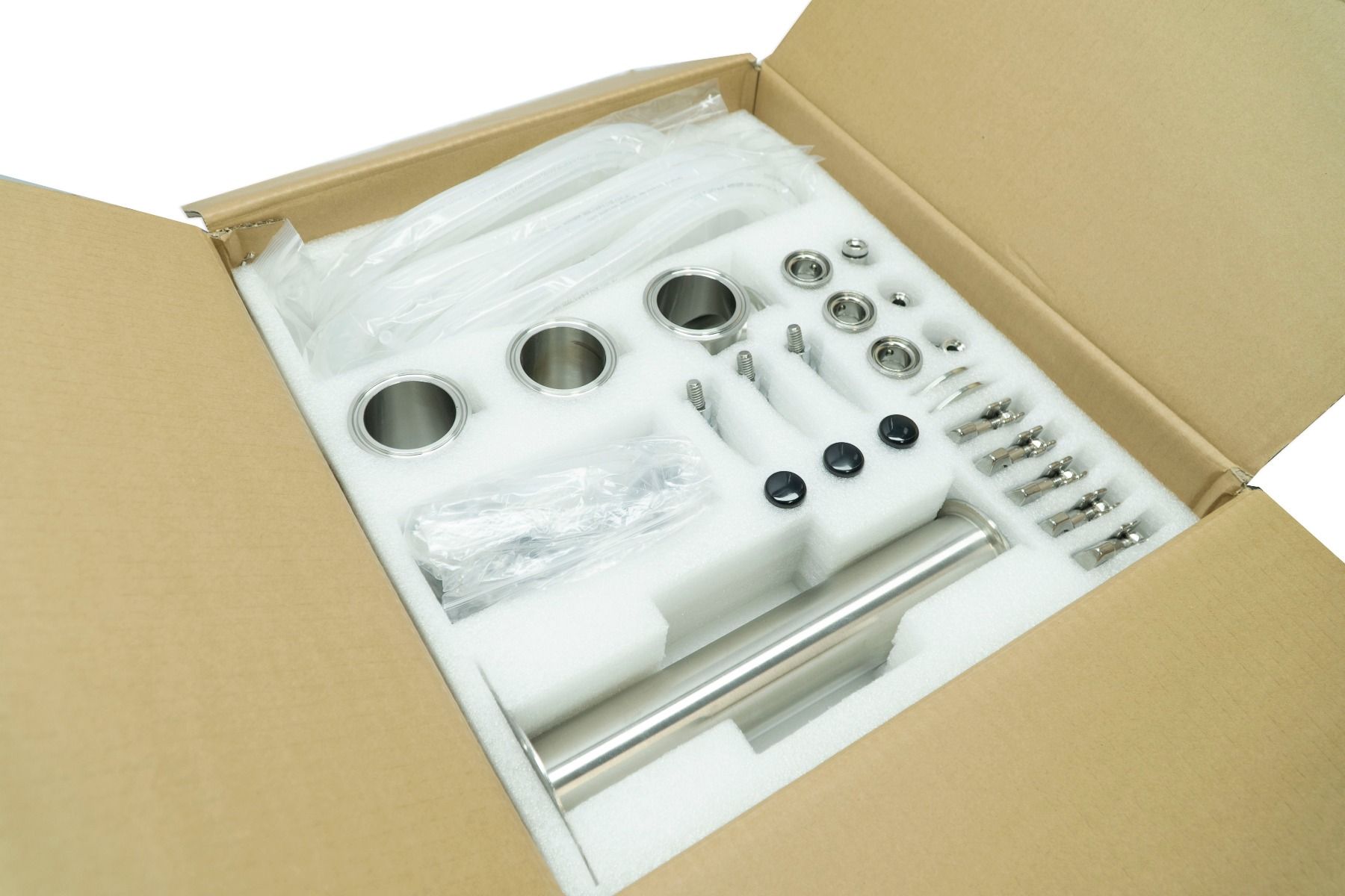 Each Keg King Modular Font is constructed from 304 Stainless Steel and manufactured to be assembled with 2 inch tri-clover fittings.