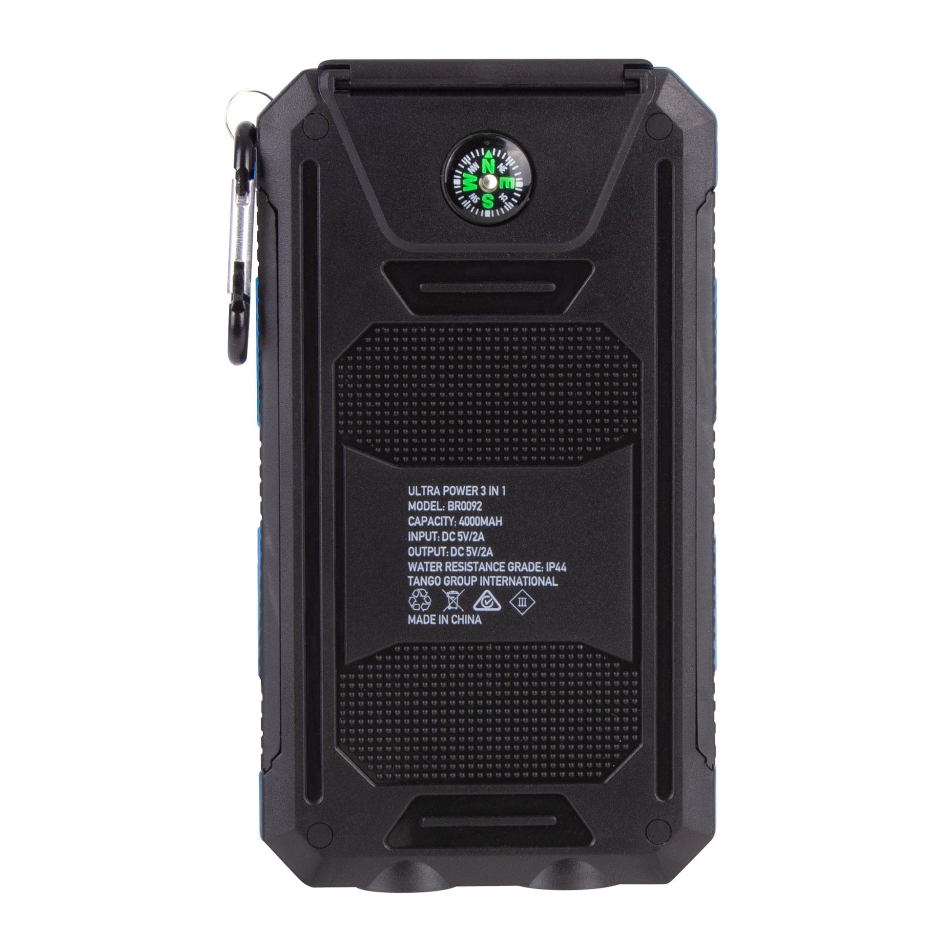 Brillar Ultra Power 3 In 1 4000mAh Solar Powerbank, Torch & Compass