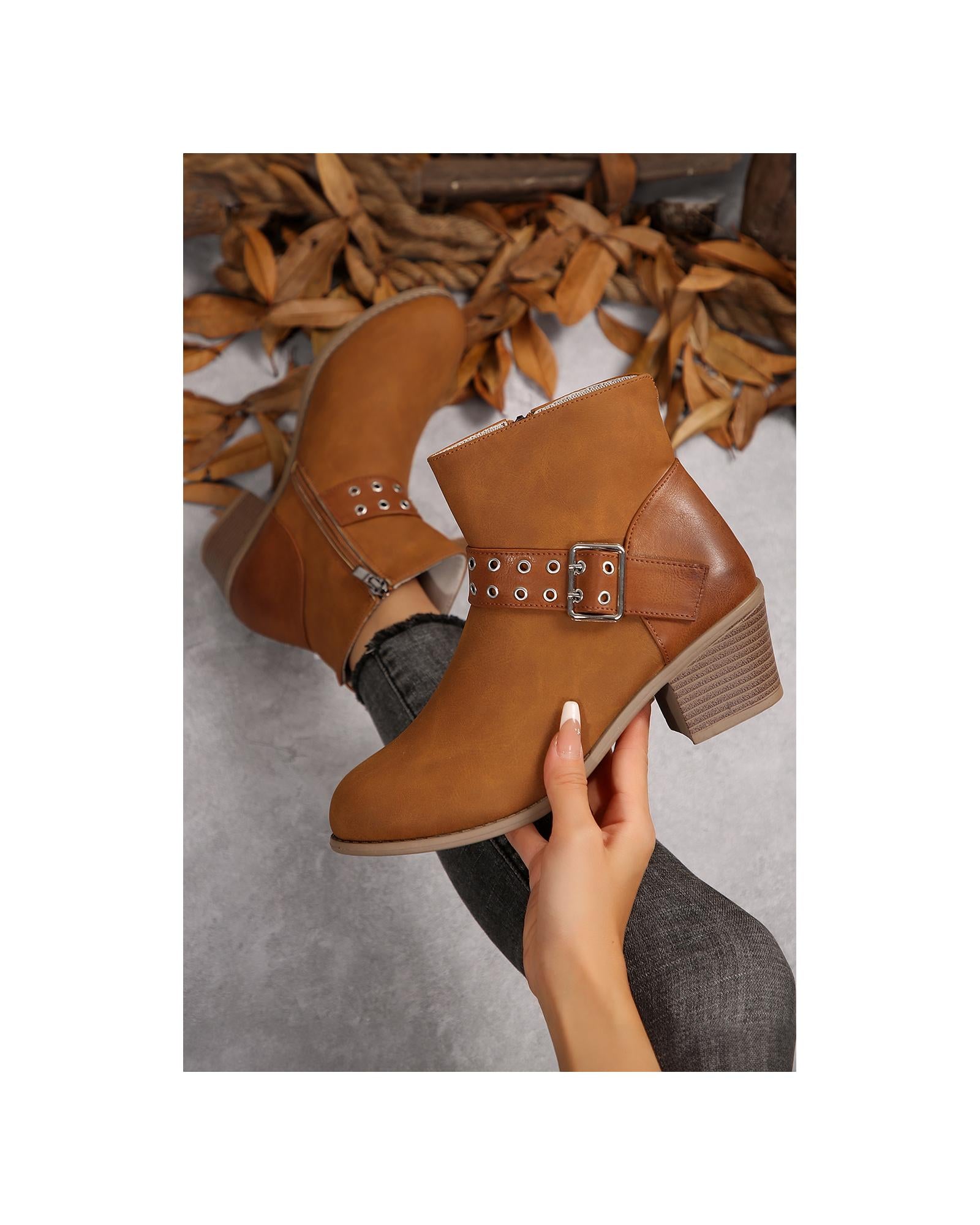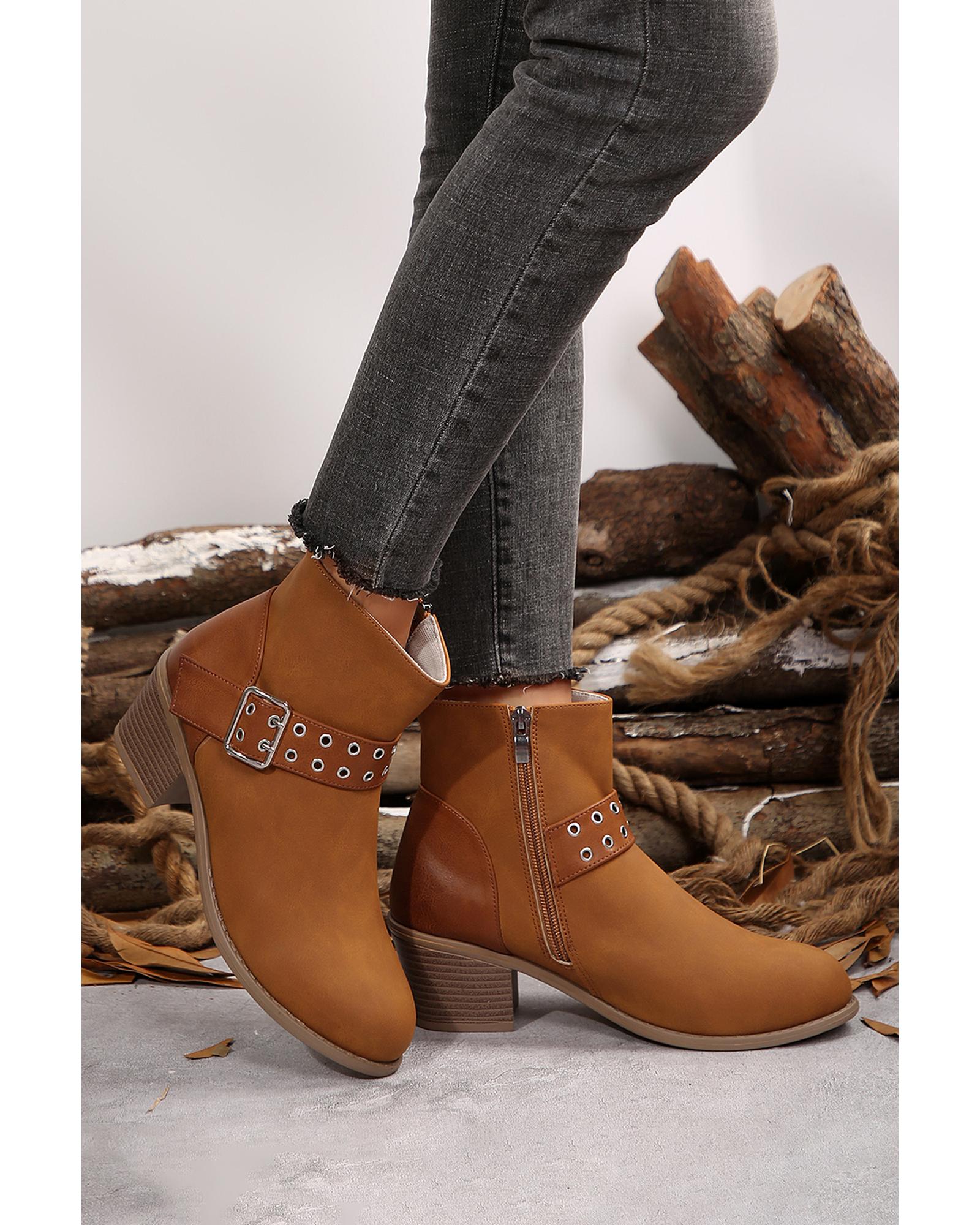 Chestnut Eyelet Buckled Chunky Heel Faux Leather Ankle Boots - 38 EU
