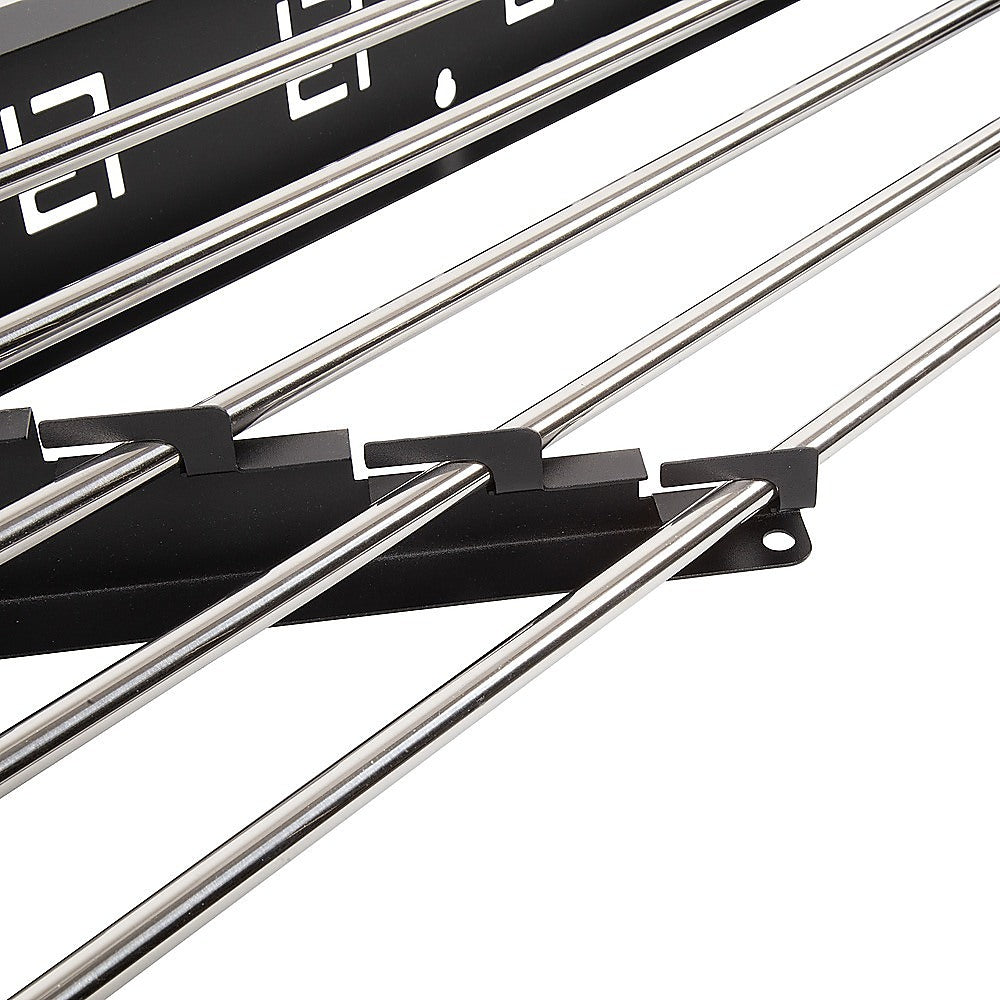 The Randy and Travis Machinery Collapsible Wall-Mounted Laundry Drying Rack is a practical solution for those seeking a subtle, space-saving air dryer for their clothes. Simply extend the rack when needed, then retract it flat against the wall to free up space and avoid clutter. Its compact size makes it ideal for smaller homes and apartments. The carbon steel design is sleek and unobtrusive, fitting seamlessly into any room without being an eyesore. Install it in your laundry room to increase functionality. This drying rack provides ample space for clothes, allowing for excellent ventilation and smooth airflow for efficient drying.