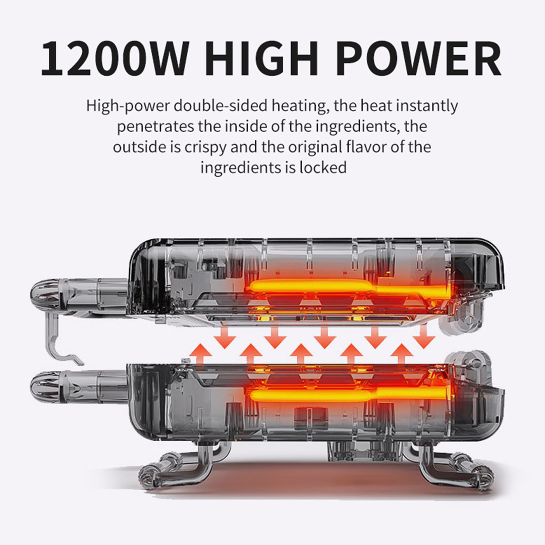 ? Double-Sided Heating Ensures even cooking on both sides simultaneously.