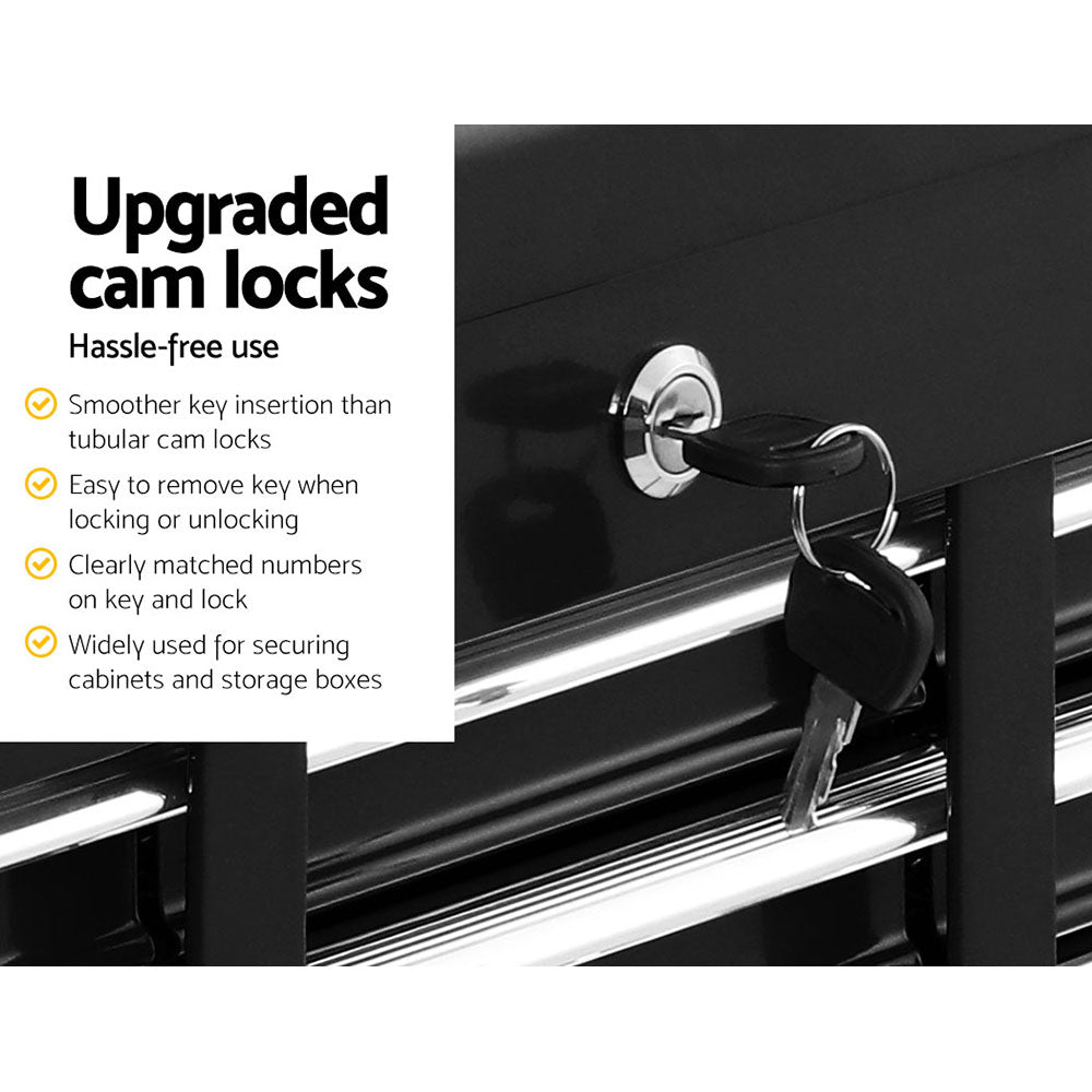 This robust, multi-drawer Giantz Tool Chest is an essential for any workshop. Crafted from durable steel, it features smooth ball-bearing slides for easy access and a secure lock system for safety. Its spacious design includes varying drawer sizes to accommodate tools of all shapes, complete with non-slip liners. Sleek and functional, it's perfect for organizing and protecting your valuable tools.