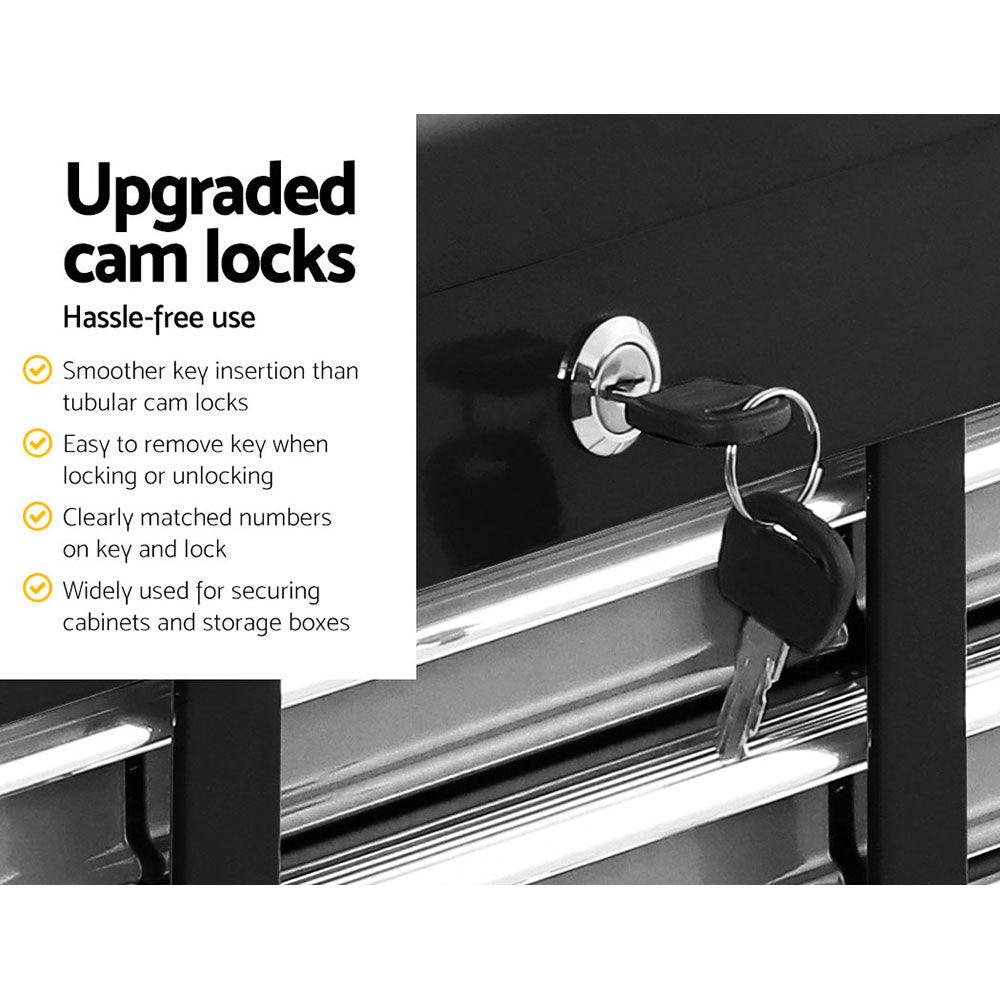 This robust, multi-drawer Giantz Tool Chest is an essential for any workshop. Crafted from durable steel, it features smooth ball-bearing slides for easy access and a secure lock system for safety. Its spacious design includes varying drawer sizes to accommodate tools of all shapes, complete with non-slip liners. Sleek and functional, it's perfect for organizing and protecting your valuable tools.