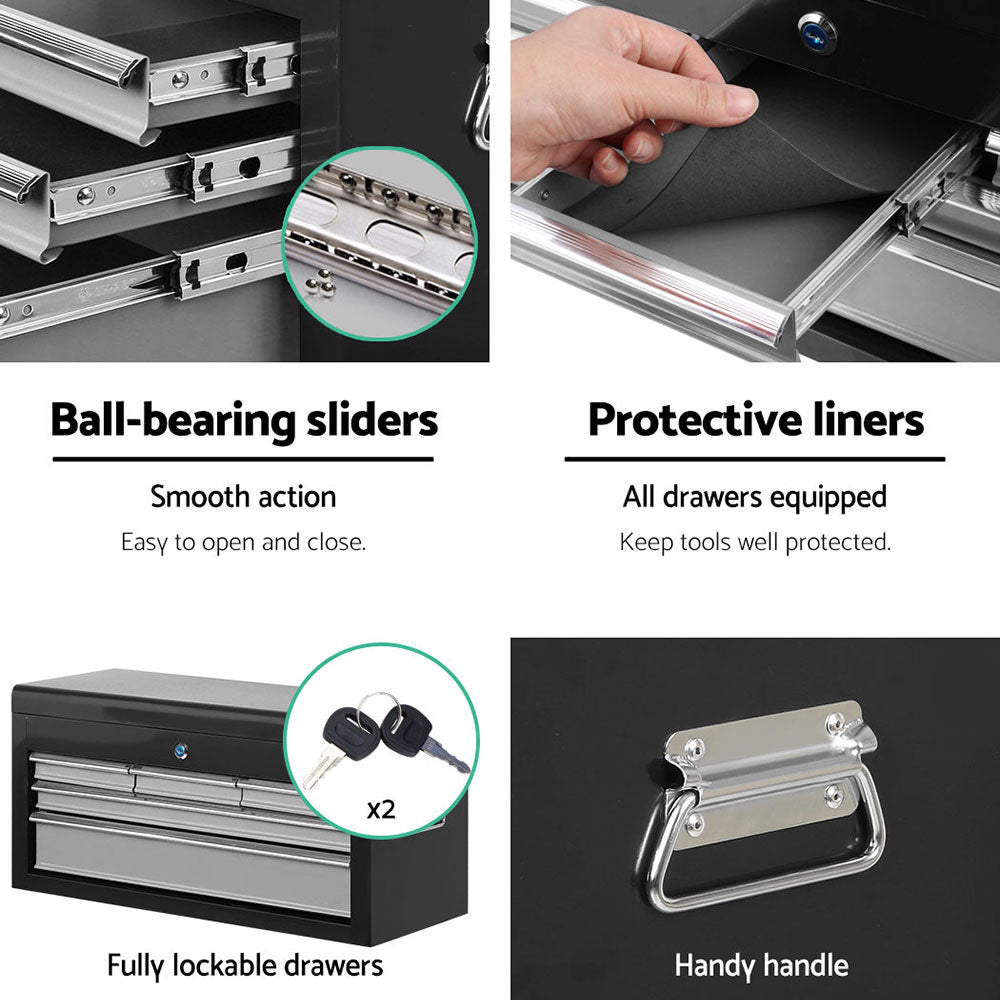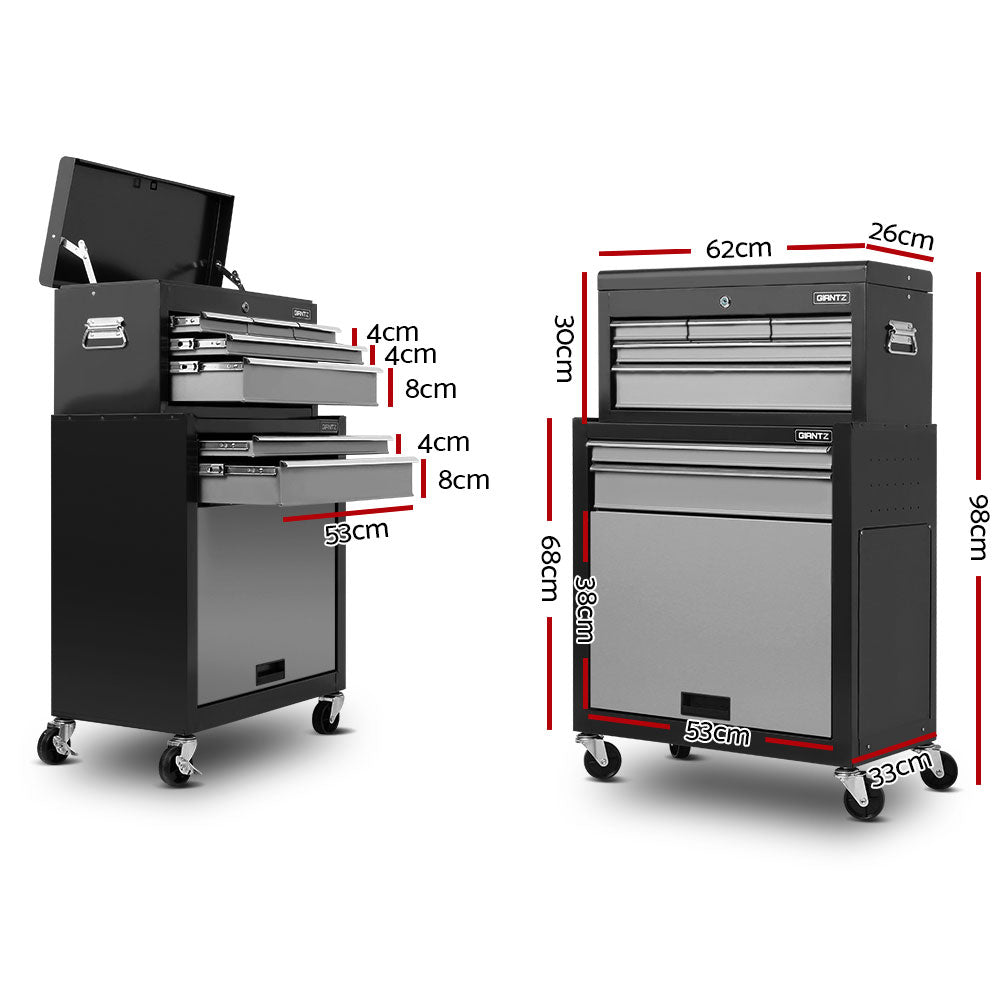 This robust, multi-drawer Giantz Tool Trolley is an essential for any workshop. Crafted from durable steel, it features smooth ball-bearing slides for easy access and a secure lock system for safety. Its spacious design includes varying drawer sizes to accommodate tools of all shapes, complete with non-slip liners. The chest is also mounted on omni-directional castors with locakble front wheels, ensuring a smooth maneuverability and stable positioning. Sleek and functional, it's perfect for organizing and protecting your valuable tools.
