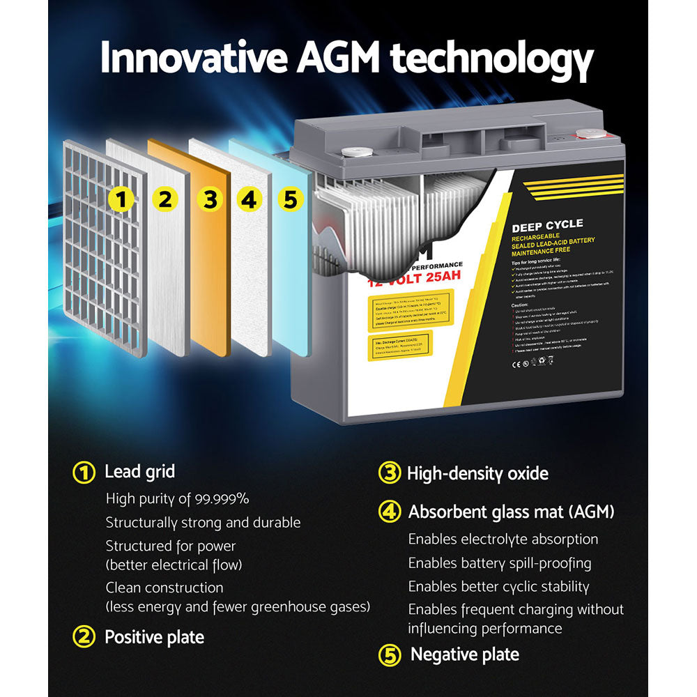 Giantz AGM Deep Cycle Battery 12V 25Ah Box Portable Solar Caravan Camping
