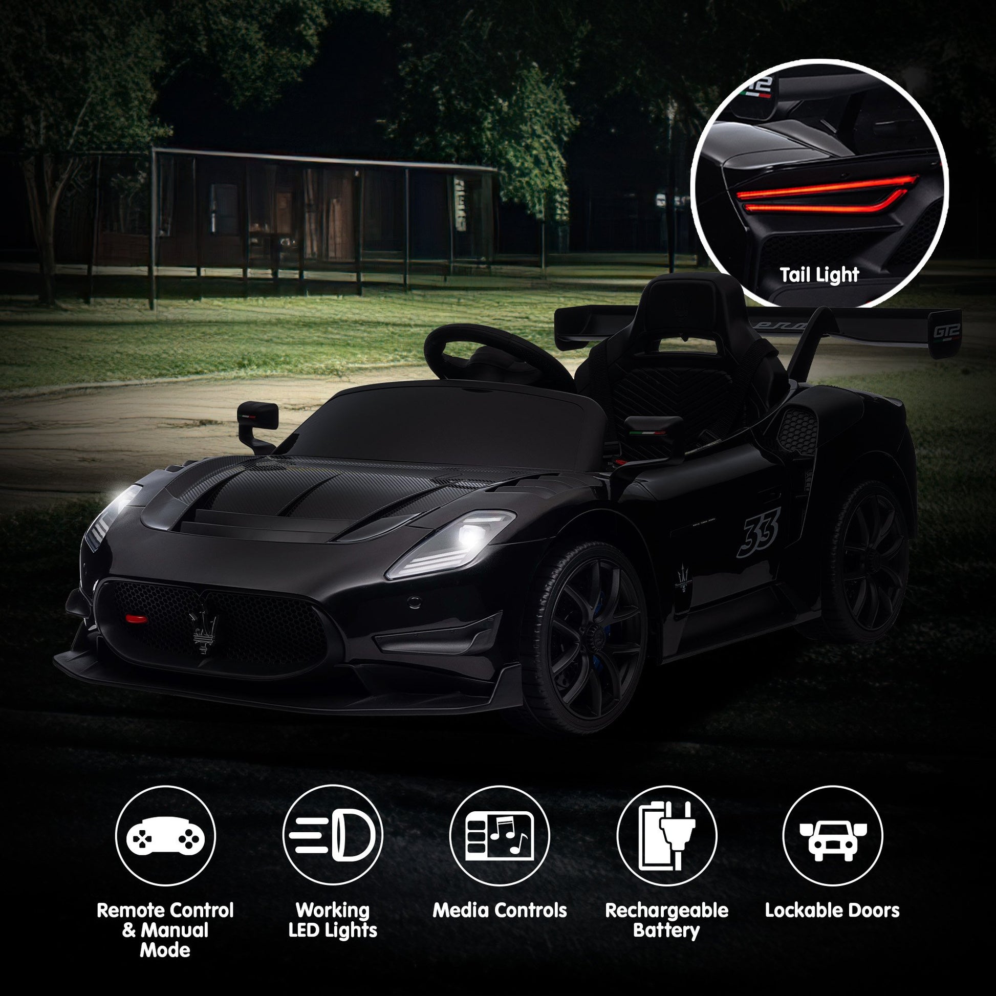 Kahuna Maserati MC20 GT2 Licensed Electric Kids Ride On Race Car Black