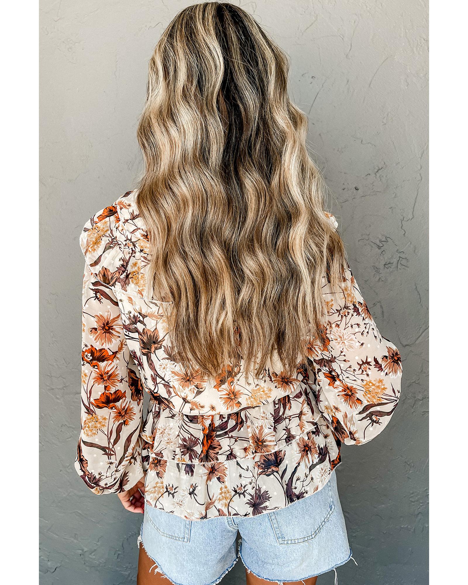 - Parchment Floral Buttoned Peplum Top