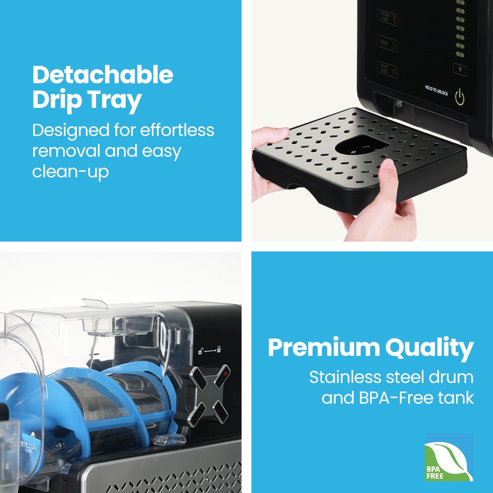 - One-touch presets for slushies made from soft drinks, juice, dairy, coffee or alcohol