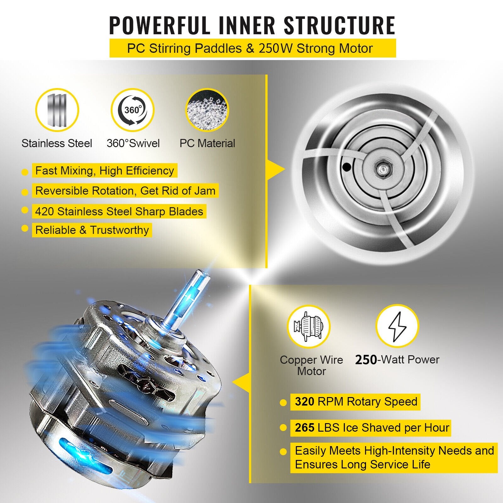 VEVOR Ice Shaver 265LBS/Hour Snow Cone Frozen Ice Shaving Slushie Dessert Maker Stainless Steel Food Grade for Kitchen Home Bars