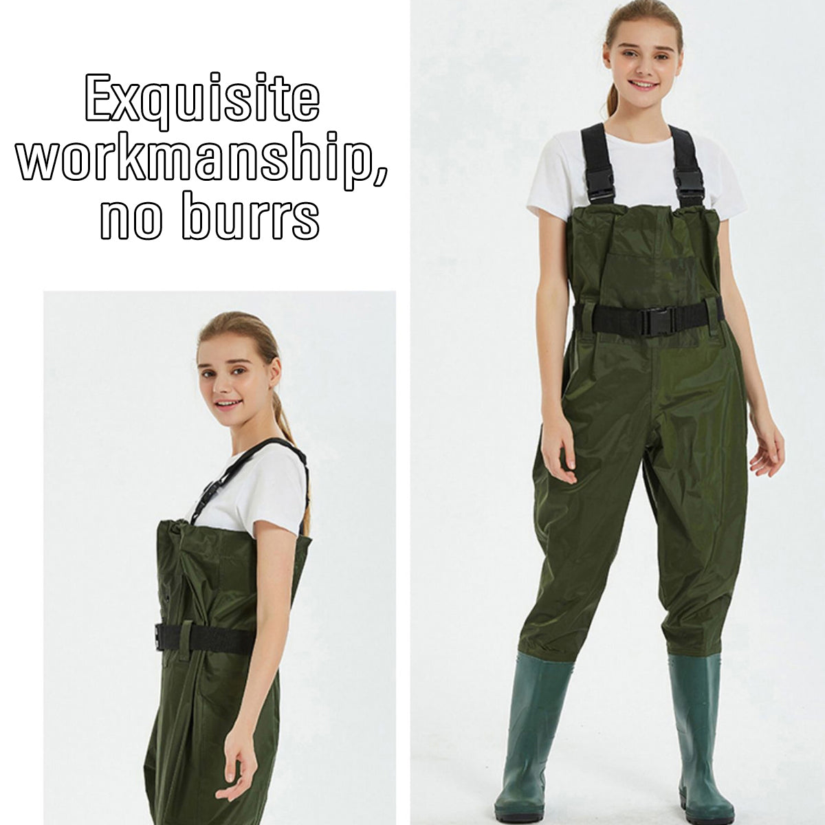 These waterproof, ultra-light wading pants are perfect for outdoor activities in wet environments. Crafted from durable nylon with a PVC waterproof coating, they provide excellent water resistance while remaining breathable and lightweight. The adjustable elastic shoulder straps and sturdy buckles ensure a comfortable, secure fit, and the integrated anti-slip boots offer added stability on slippery surfaces. Ideal for fishing, hunting, farming, and other outdoor tasks, these wading pants combine functionality with comfort for all-day wear.