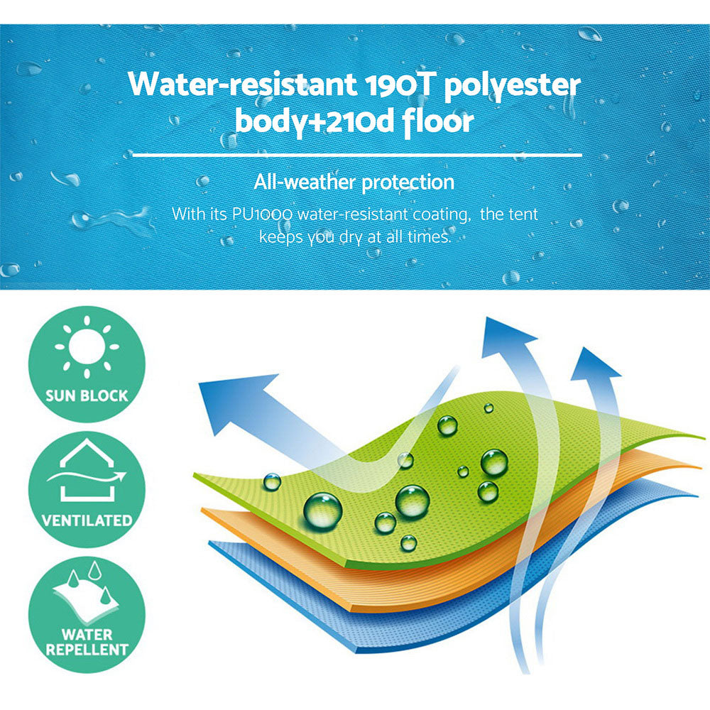 More importantly, this lightweight Tent comes with separate sections for showering and toilet use with proper drainage holes and adequate ventilation for comfort. Perfect for camping, road trips or even outdoor events like market days or sport meets, the Weisshorn Pop-u p Tent is a must to ensure a pleasant experience for everyone.