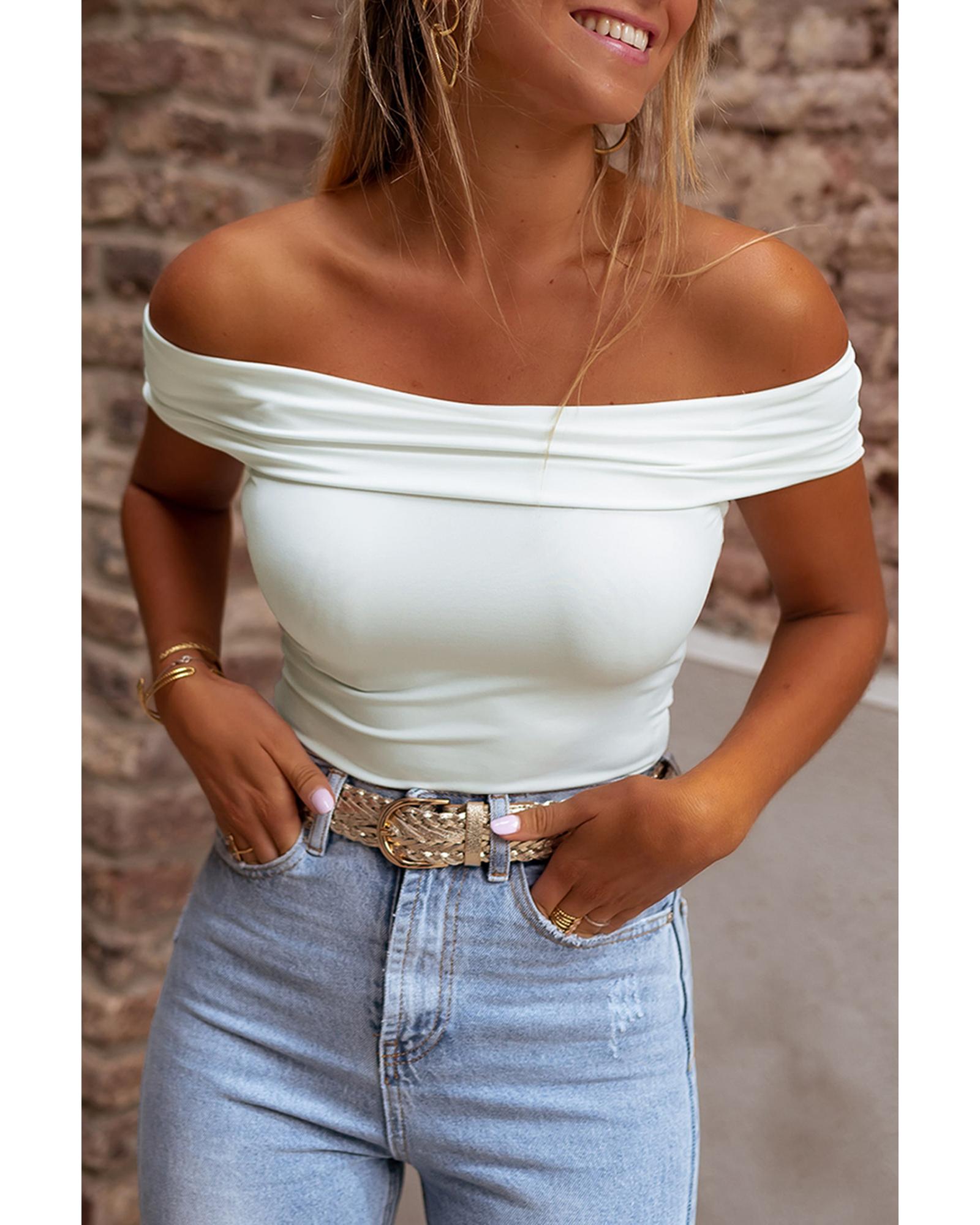 White Folded Off Shoulder Slim Top - XL